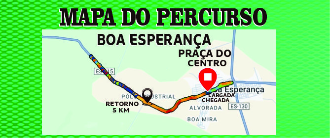 A 5ª etapa da copa norte capixaba de corrida de rua, será realizada no dia 23 de Novembro de 2025 na cidade Boa Esperança – ES, com distâncias de 5 km e 10 km e caminhada de 5k. Poderão participar da corrida pessoas acima de 15 anos, de ambos os sexos, desde que devidamente inscrita no evento, para caminhada a idade inicia à partir de 10 anos, (devidamente acompanhada pelo seu responsável).